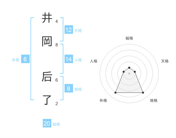 井岡 后了さんの総格は20画の1点!