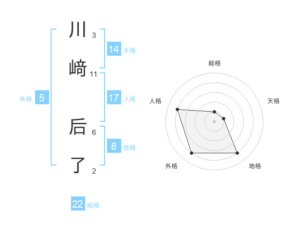 川﨑 后了さんを姓名の画数から五運を鑑定