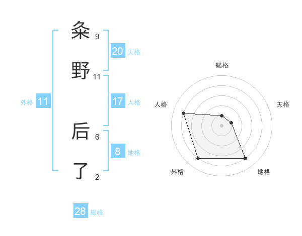 粂野 后了さんの外格は11画の4点!