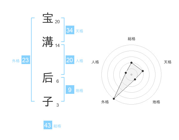 宝溝 后子さんの総格は43画の2点!