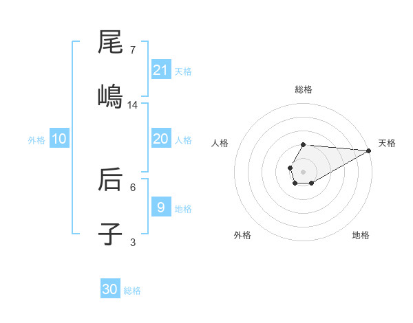 尾嶋 后子さんの総格は30画の2点!