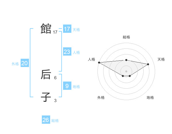 館 后子さんの総格は26画の2点!