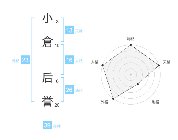 小倉 后誉さんを姓名の画数から五運を鑑定