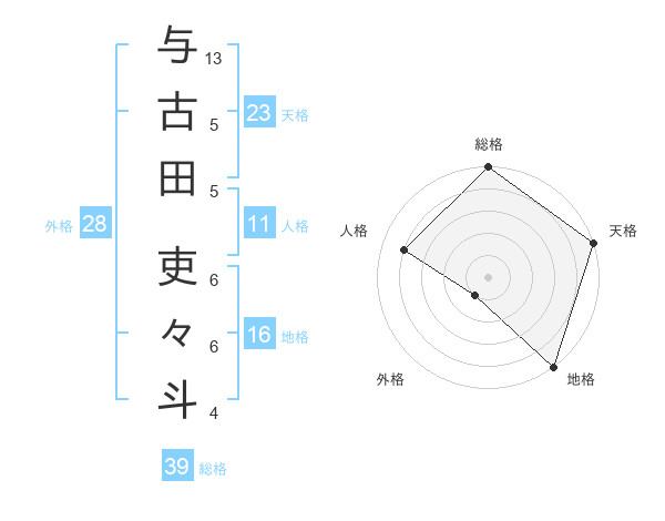 与古田 吏々斗さんを姓名の画数から五運を鑑定