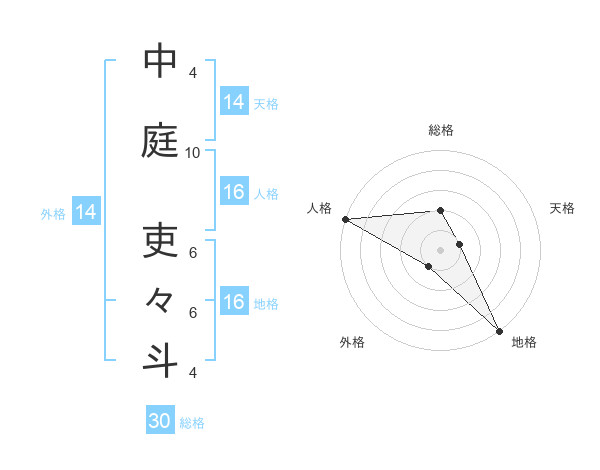 中庭 吏々斗さんを姓名の画数から五運を鑑定