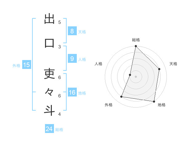 出口 吏々斗さんの総格は24画の5点!