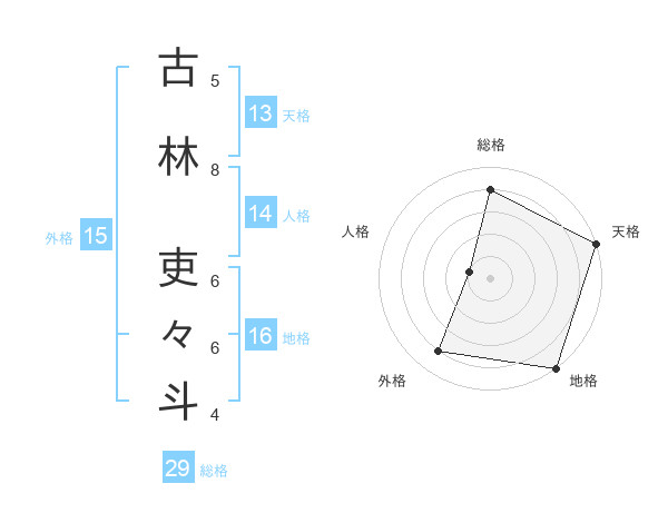 古林 吏々斗さんを姓名の画数から五運を鑑定