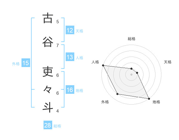古谷 吏々斗さんを姓名の画数から五運を鑑定
