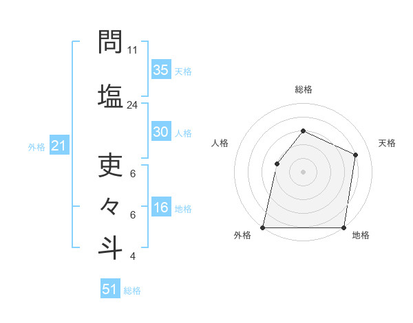 問塩 吏々斗さんの総格は51画の3点!