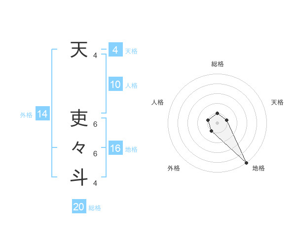 天 吏々斗さんを姓名の画数から五運を鑑定