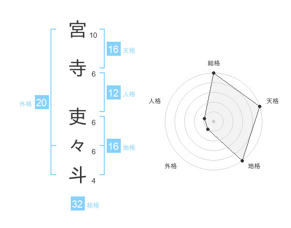 宮寺 吏々斗さんの地格は16画の5点!
