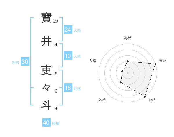 寶井 吏々斗さんの天格は24画の5点!