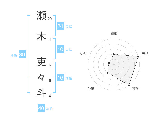 瀬木 吏々斗さんを姓名の画数から五運を鑑定