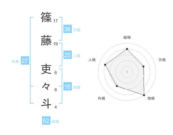 篠藤 吏々斗さんを姓名の画数から五運を鑑定