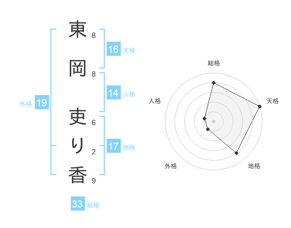東岡 吏り香さんの天格は16画の5点!