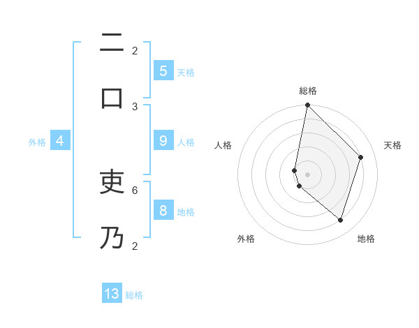 二口 吏乃さんを姓名の画数から五運を鑑定