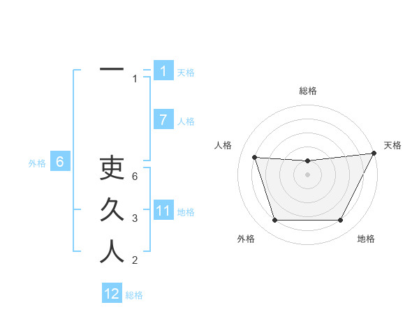 一 吏久人さんを姓名の画数から五運を鑑定