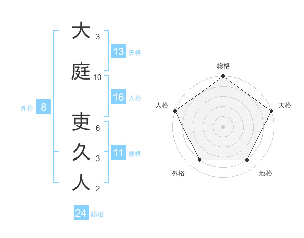 大庭 吏久人さんを姓名の画数から五運を鑑定