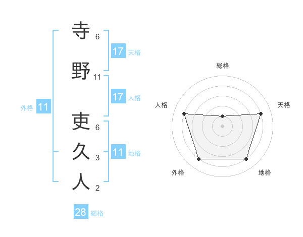 寺野 吏久人さんを姓名の画数から五運を鑑定