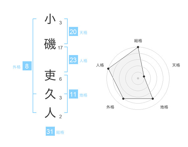 小磯 吏久人さんの天格は20画の1点!