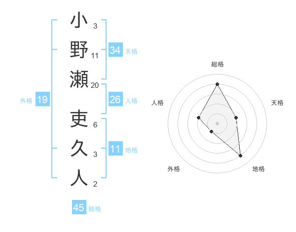 小野瀬 吏久人さんを姓名の画数から五運を鑑定