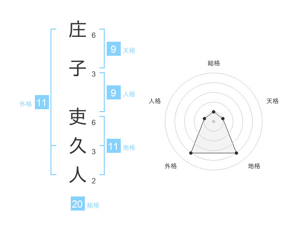 庄子 吏久人さんの外格は11画の4点!