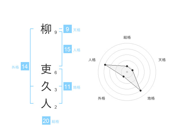 柳 吏久人さんを姓名の画数から五運を鑑定
