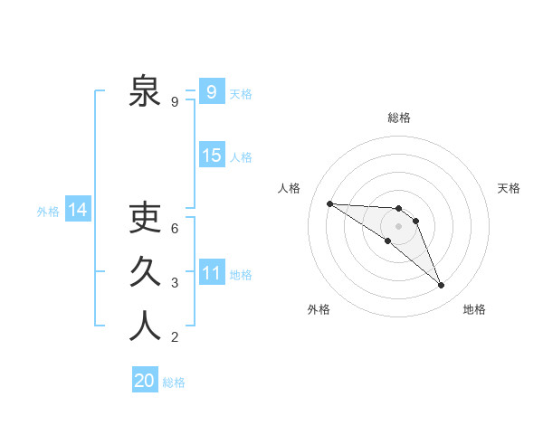 泉 吏久人さんの総格は20画の1点!