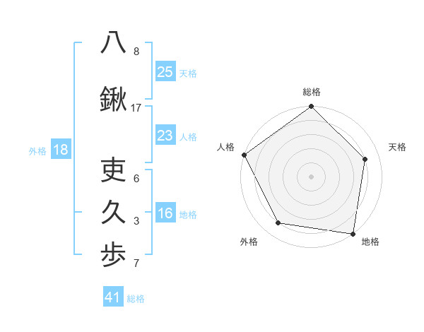 八鍬 吏久歩さんの天格は25画の4点!