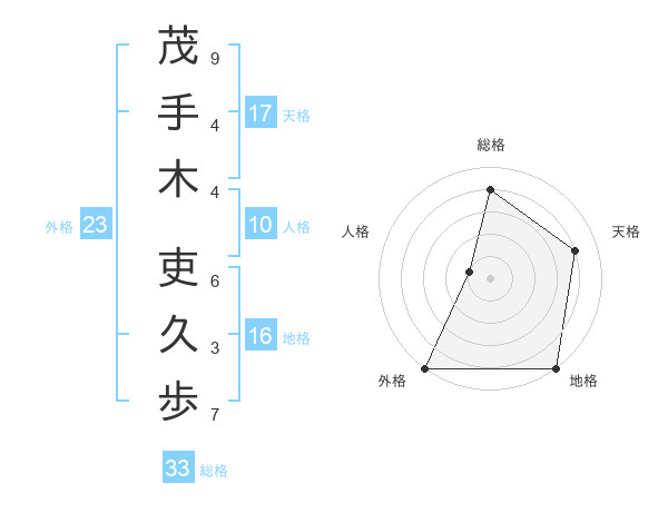 茂手木 吏久歩さんを姓名の画数から五運を鑑定