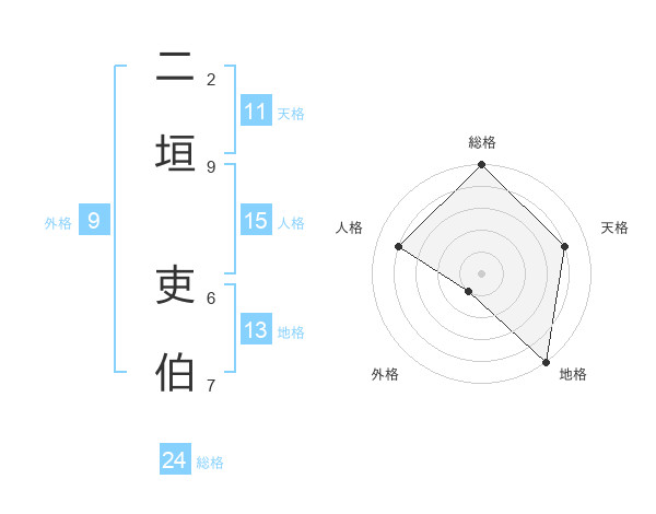 二垣 吏伯さんの総格は24画の5点!