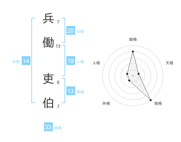 兵働 吏伯さんの総格は33画の4点!