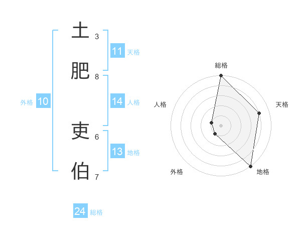 土肥 吏伯さんを姓名の画数から五運を鑑定