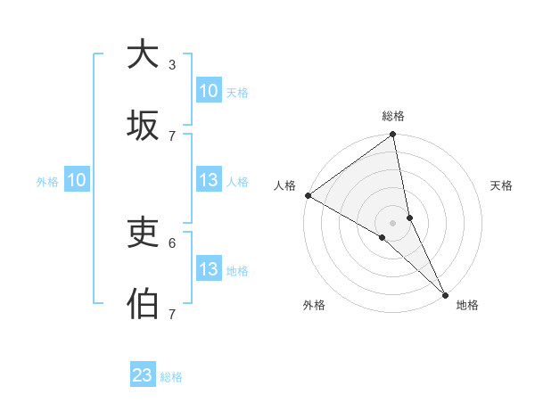 大坂 吏伯さんを姓名の画数から五運を鑑定