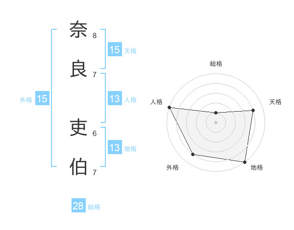 奈良 吏伯さんの地格は13画の5点!