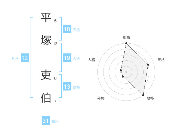 平塚 吏伯さんの総格は31画の5点!