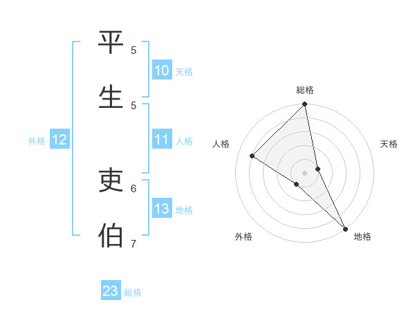 平生 吏伯さんを姓名の画数から五運を鑑定