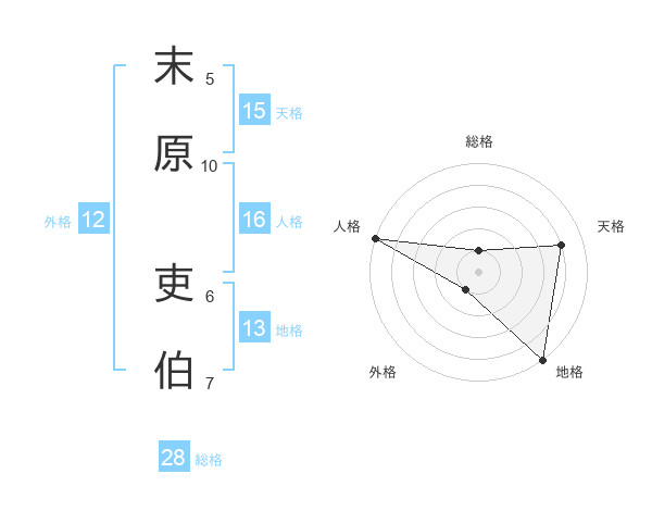 末原 吏伯さんを姓名の画数から五運を鑑定
