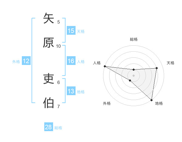 矢原 吏伯さんの天格は15画の4点!
