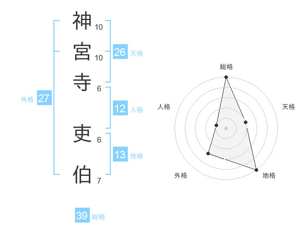 神宮寺 吏伯さんを姓名の画数から五運を鑑定