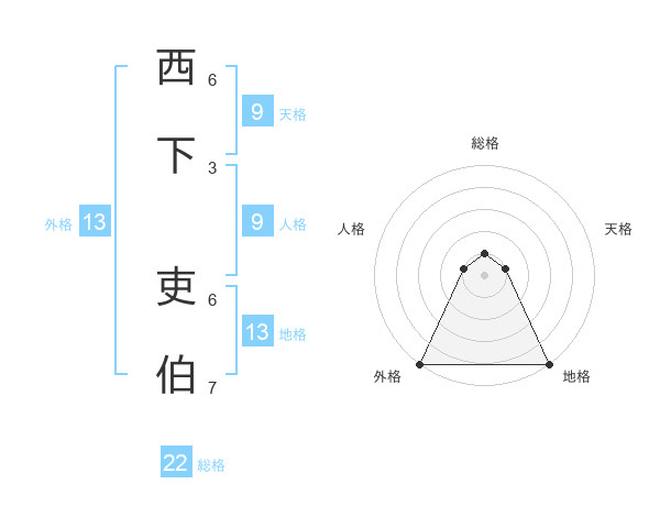 西下 吏伯さんの外格は13画の5点!