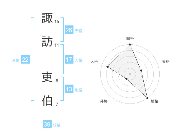 諏訪 吏伯さんを姓名の画数から五運を鑑定