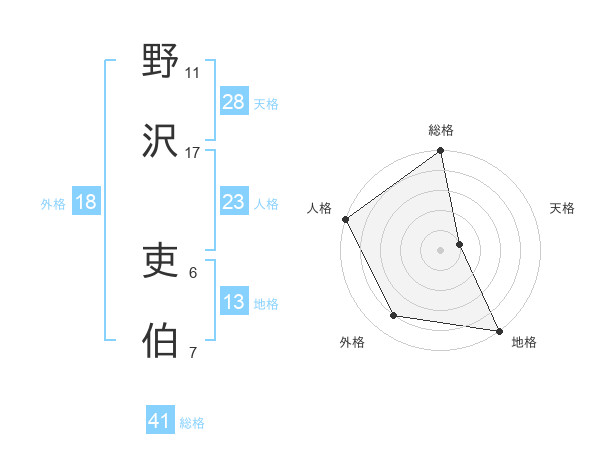 野沢 吏伯さんの総格は41画の5点!