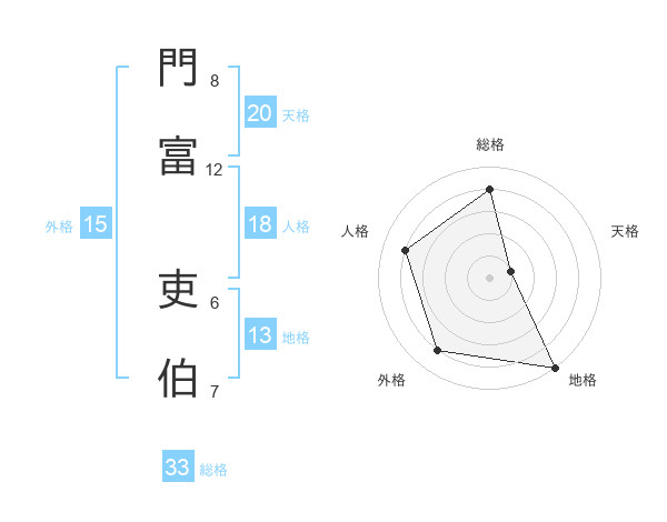門富 吏伯さんの総格は33画の4点!