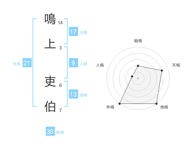 鳴上 吏伯さんの外格は21画の5点!