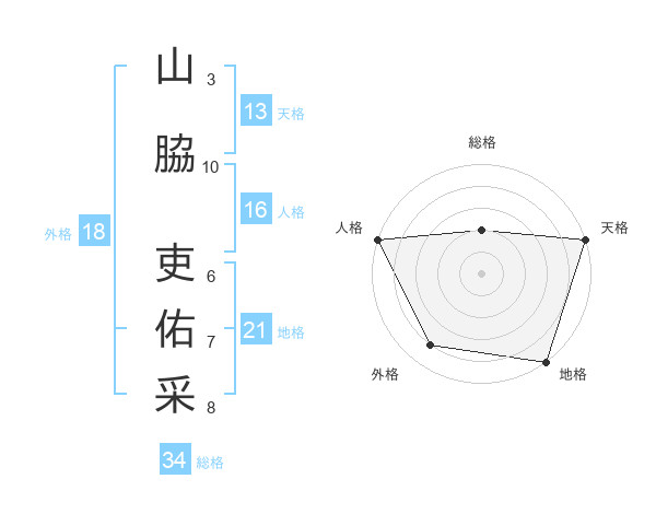 山脇 吏佑采さんの天格は13画の5点!