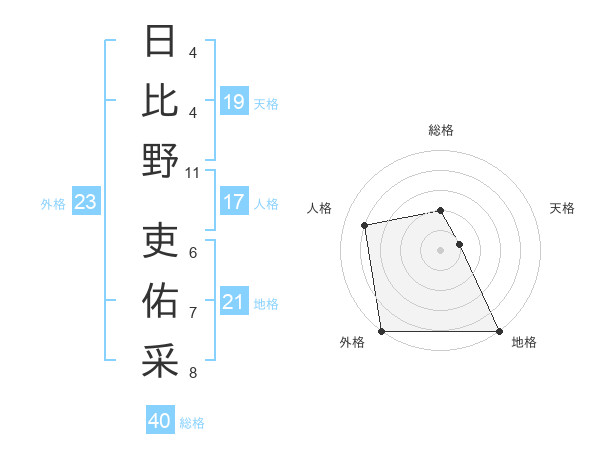 日比野 吏佑采さんを姓名の画数から五運を鑑定