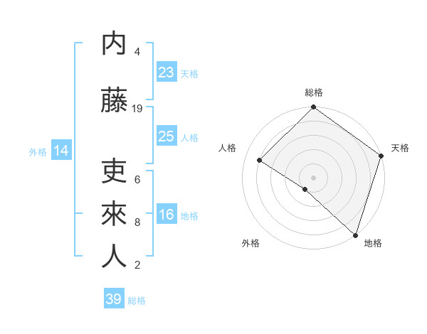 内藤 吏來人さんを姓名の画数から五運を鑑定