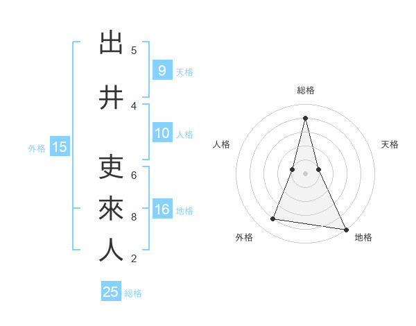 出井 吏來人さんの総格は25画の4点!