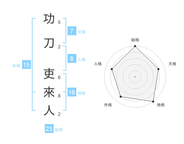 功刀 吏來人さんを姓名の画数から五運を鑑定